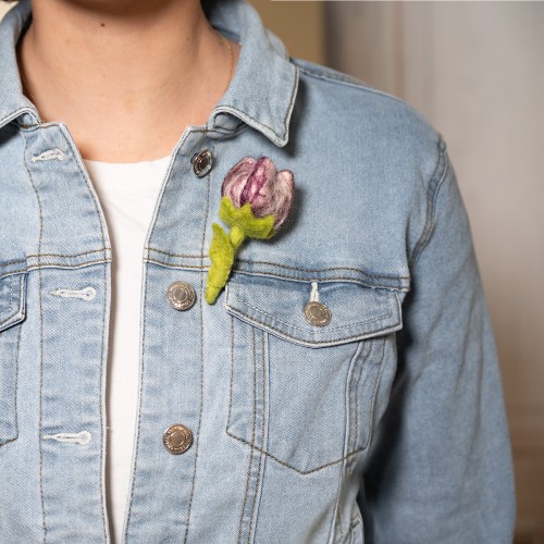 Sjaal met Verhaal: Handmade – Fairmade – Fairtrade, bloemen van vilt. Zij creëren werk voor vrouwen in Nepal.
